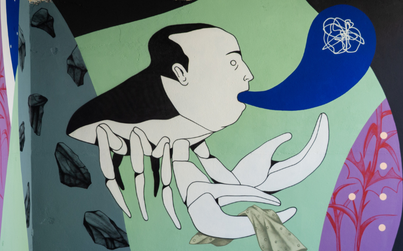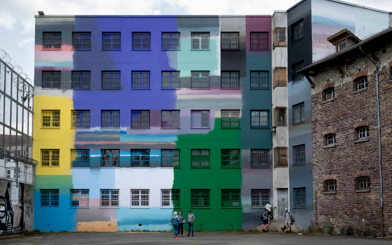Les artistes Germain Ipin et Marc-Antoine Granier ont recueilli des témoignages, reste de pots de peinture et perceptions liés à l’ancienne prison Jacques Cartier pour créer une œuvre mêlant peinture murale et création sonore.