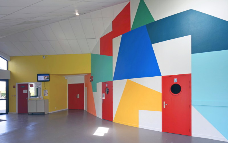 Les 6 classes de 4eme ont pu réaliser des peintures dans les couloirs du collège en suivant le processus génératif mis en place par l’artiste EL TONO. Il a également pu peindre une oeuvre monumentale dans le Hall.