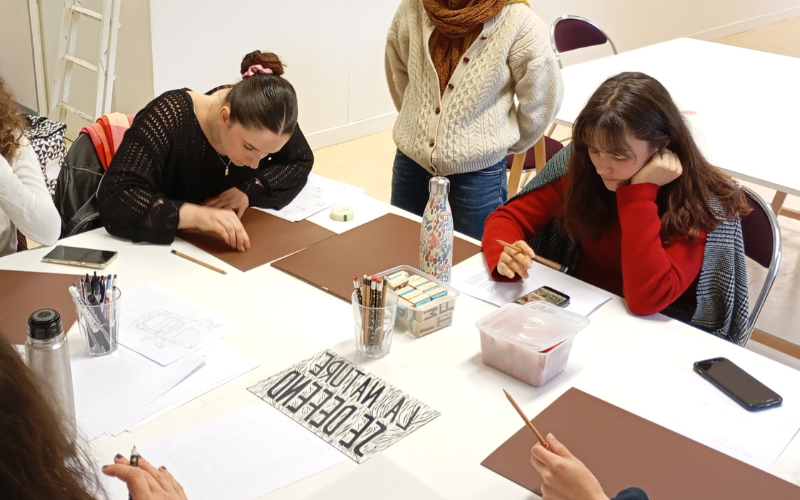 Cycle de rencontres et ateliers avec les artistes résidents de l’atelier-galerie Upstairs. Séances d’initiation à la linogravure avec l’artiste Fanny Legrand.